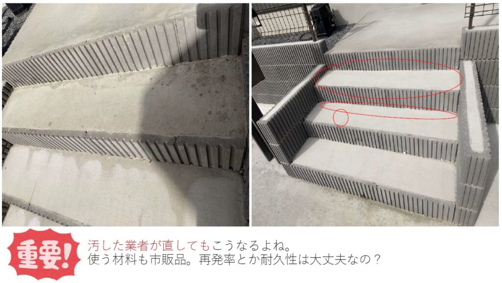 ひび割れや汚れなどを、まるで何事もなかったかのようにきれいに仕上げる技術はさすがプロ。